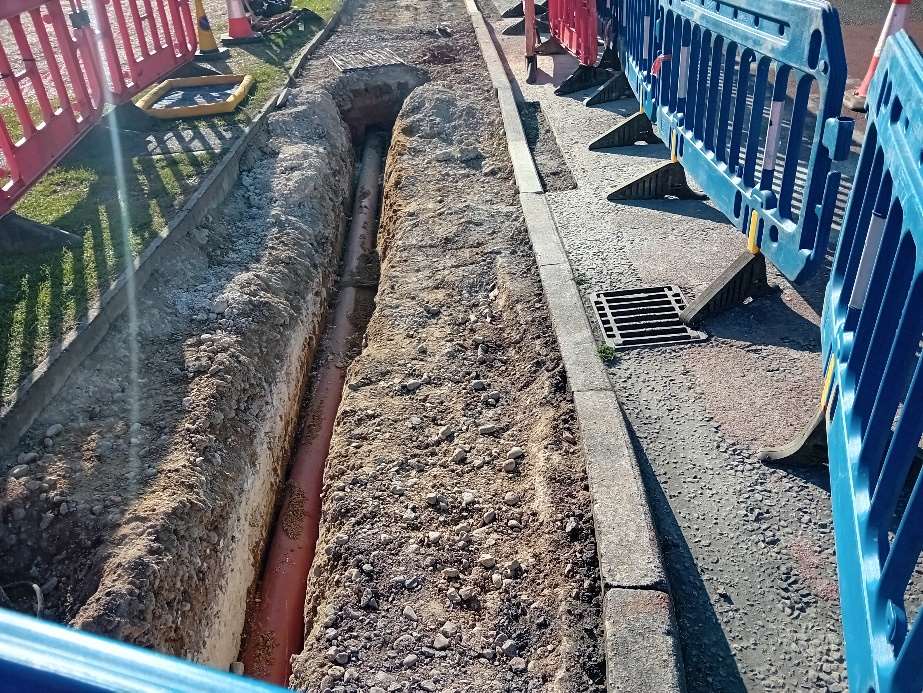 “The ducting for the electrical trench was excavated, new pipe has been laid and the trench backfilled in the northern footway on Bell Walk. The dropped kerbs have been installed for the new vehicular access at the Uckfield Club.
