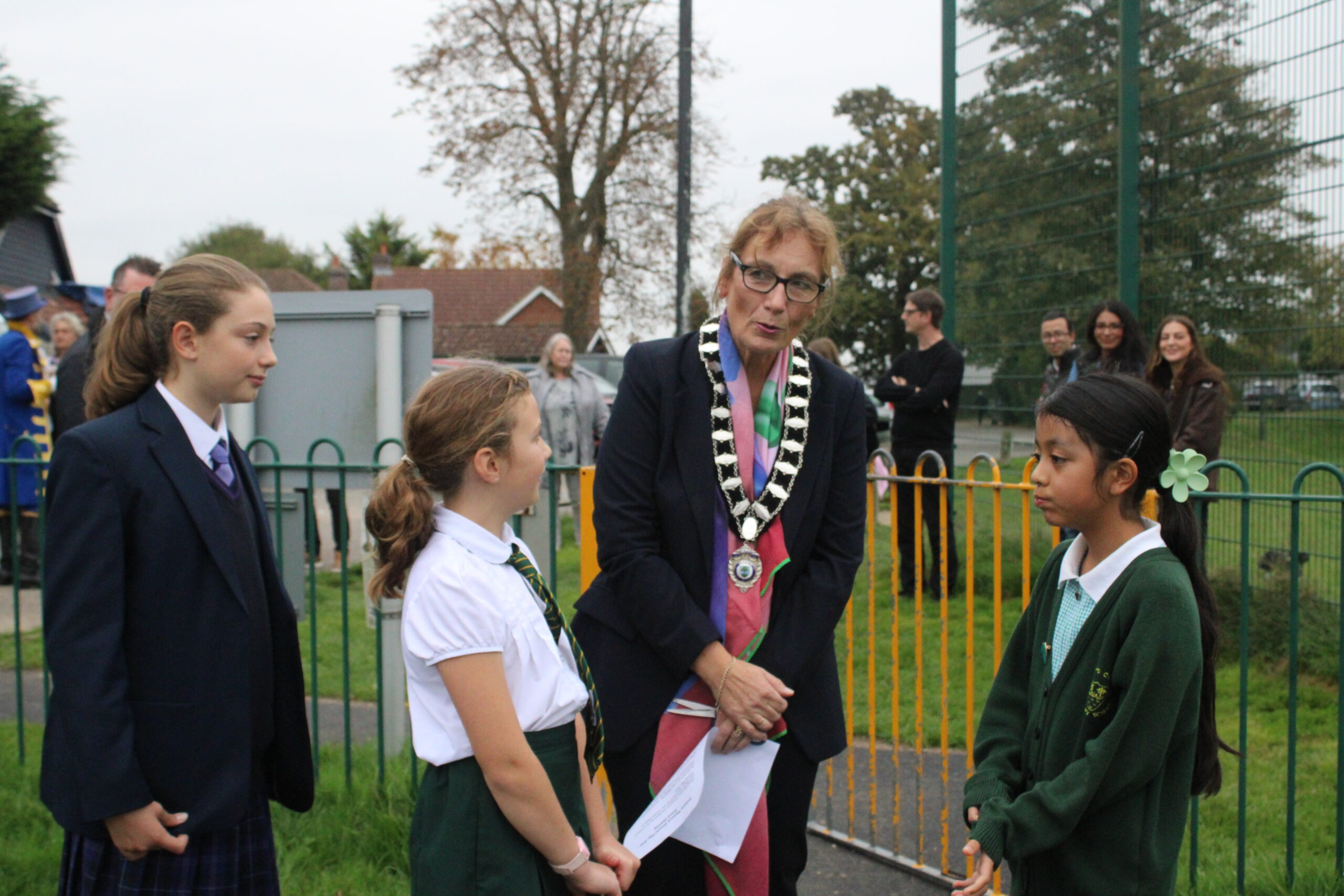 They were joined by the Town Crier, Council Officers, St Philip’s Catholic Primary School Assistant Principal Ellie Shaddick, and three young competition winners from St Philip’s – Elizabeth, Bea and Phoebe – who took part in the Council’s ‘Design Victoria Play Area’ competition earlier this year.